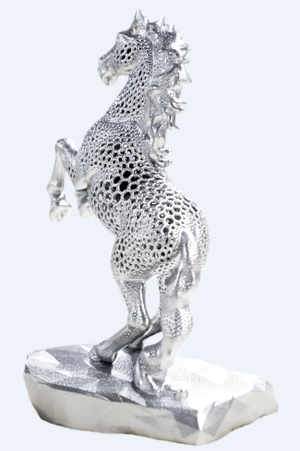 擔心擺件太占地方? 這款駿馬擺件給出了完美答案。 採用鈦合金資料進行列印,尺寸僅為101*75*138mm,重量約165g。專為現代空間設計,不挑場景——辦公桌、書架、玄關、櫥窗……隨處一放,皆是氣場。